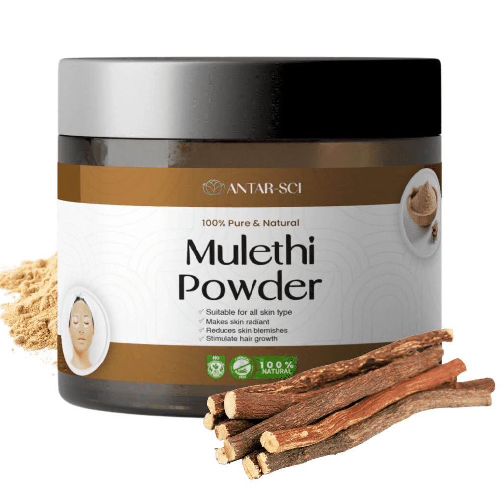 - Natural Skin Brightening By blocking melanin production, Mulethi actively fades hyperpigmentation and evens out skin tone. It is particularly effective for those stubborn post-acne marks that usually take months to disappear.